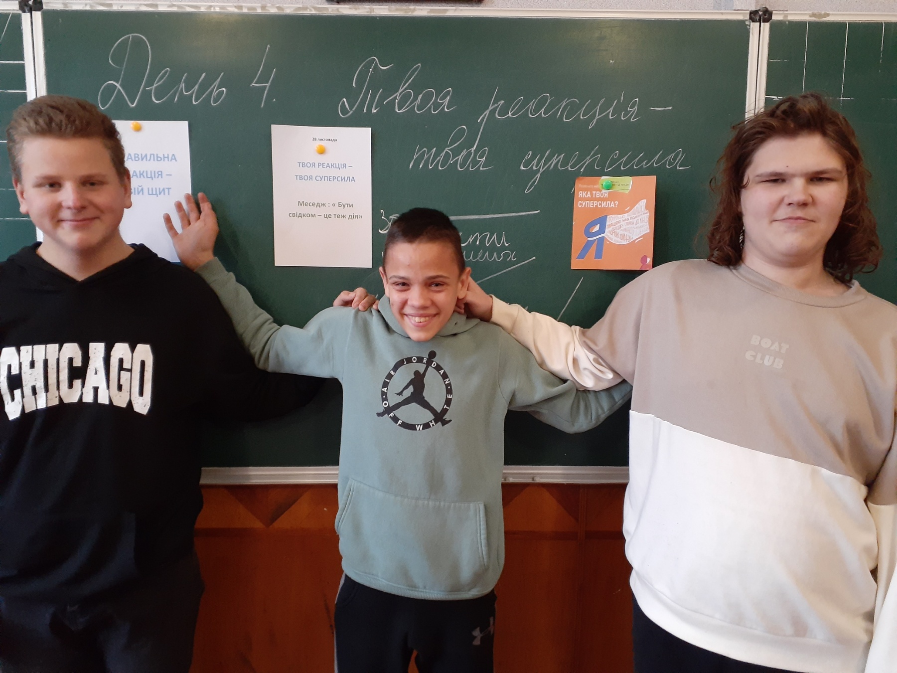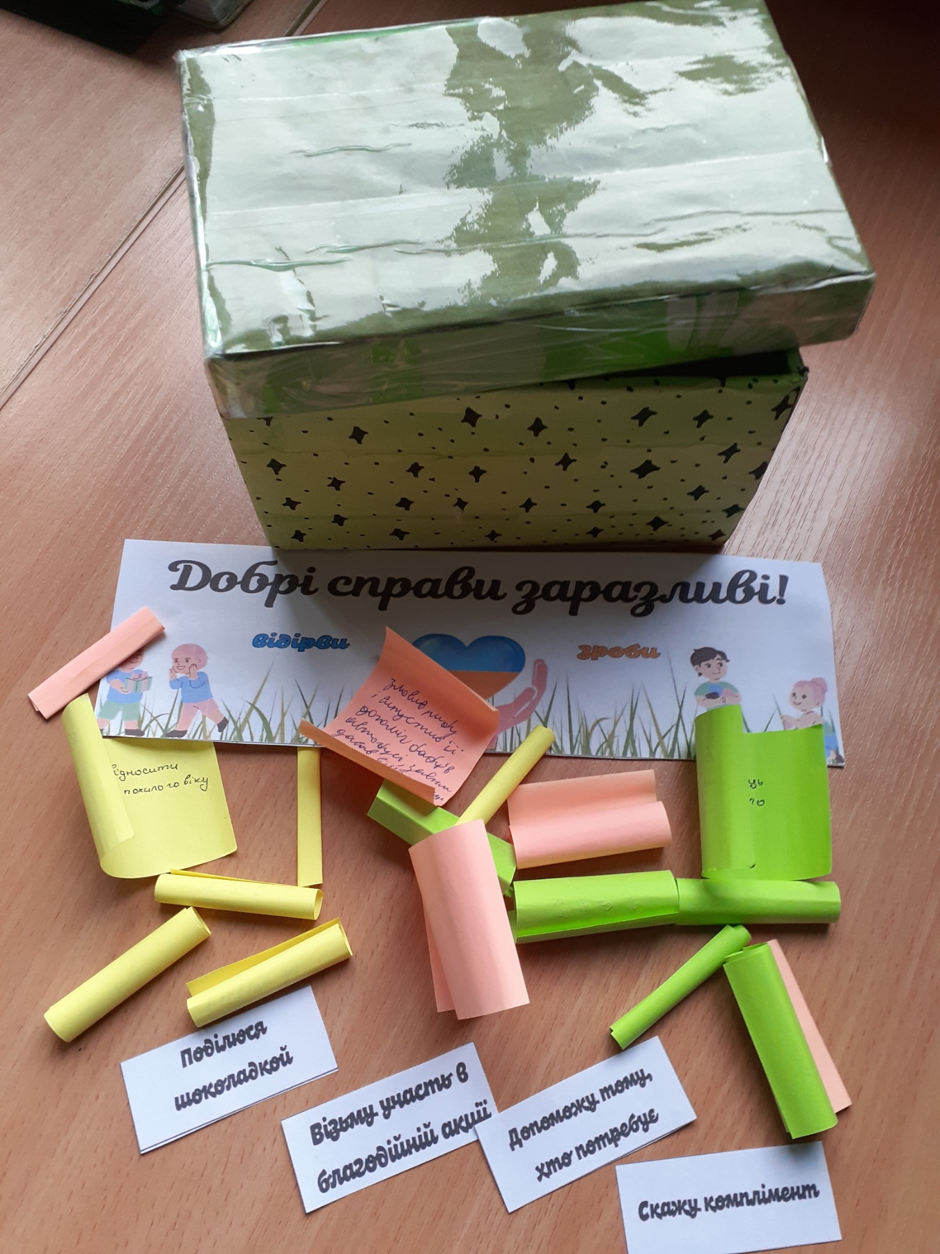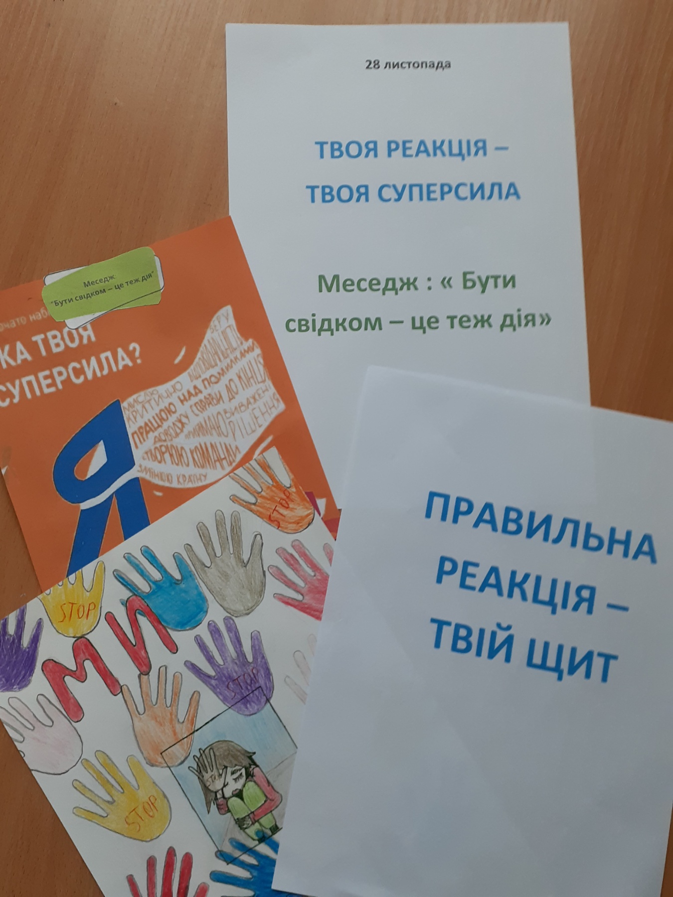 Міжнародна акція “16 днів проти насилля” щорічно триває з 25 листопада до 10 грудня. З метою створення безпечного освітнього середовища в гімназії, проявів булінгу, формування позитивних установок, було проведено квест “16 днів – 16 викликів добра”. Діти отримали можливість говорити про насильство не як про страх, а про силу – силу добра, підтримки. Ідея квесту: не лякати і не повчати, а через креатив, співпереживання і дії показати, що добро, повага і підтримка – це суперсила. Кожен проведений день – новий виклик або акція. Стартував квест із флешмобу, де учні разом створили світлову хвилю у темному класі. Меседж дня : ” Ми світимо проти насилля”. У коридорі гімназії було створено ” Стіну поваги”. Учні писали добрі слова своїм друзям, створювали комікс про людину, яка підтримує “Мій супергерой – це…” Школярі створили скриньку для “листів підтримки”, “плейлист добра”. Проведено ” урок емоційної паузи”, де учасники вчилися треку “Три глибоких вдихи” – замість трьох поганих слів”. Проведено “День довіри”, “День добра у дії”. Ми використали ці 16 днів, щоб у свідомості кожної дитини виникла думка: “Якщо мені погано, я знаю, хто мені допоможе, і я не боюся про це сказати”.