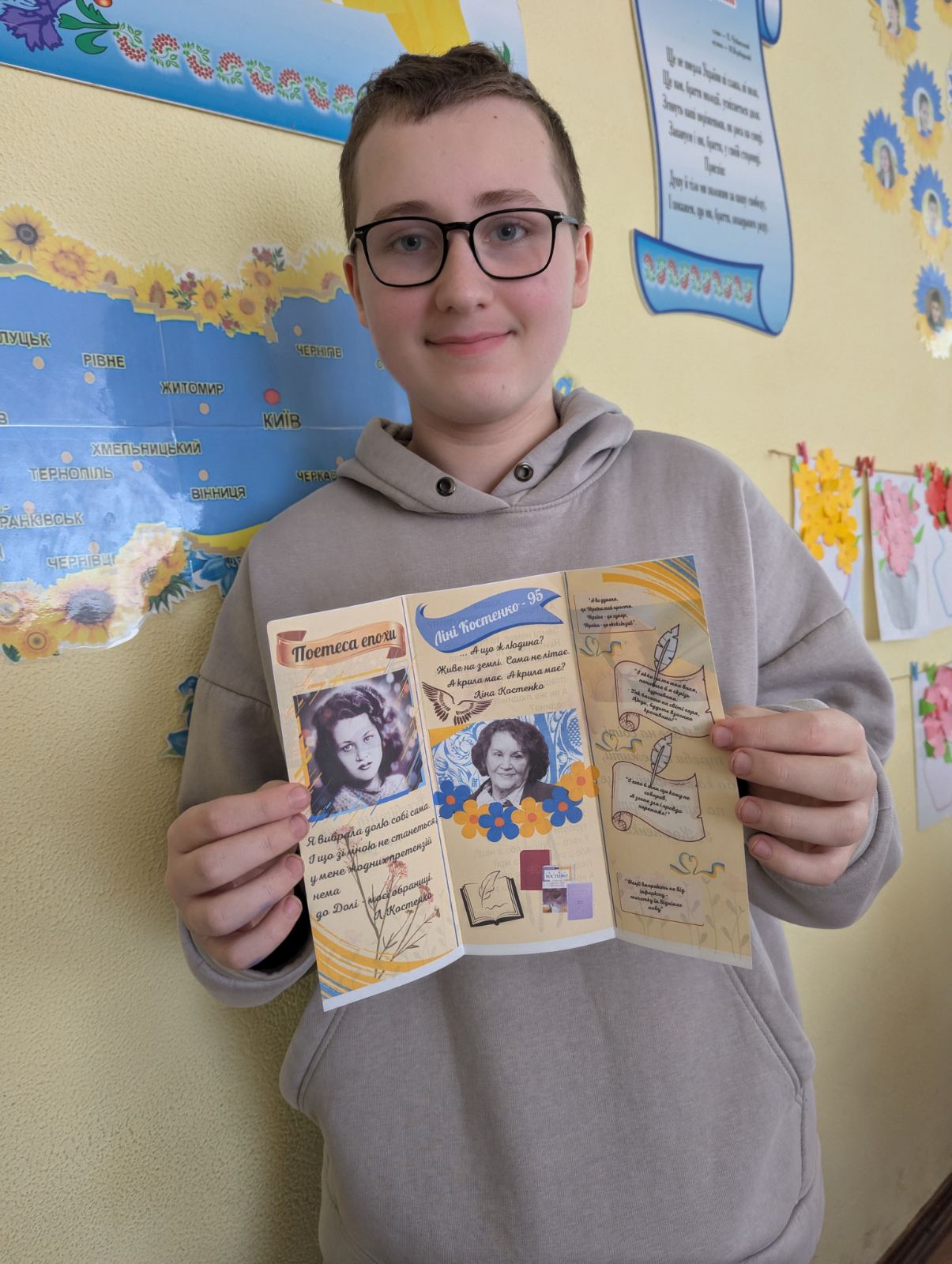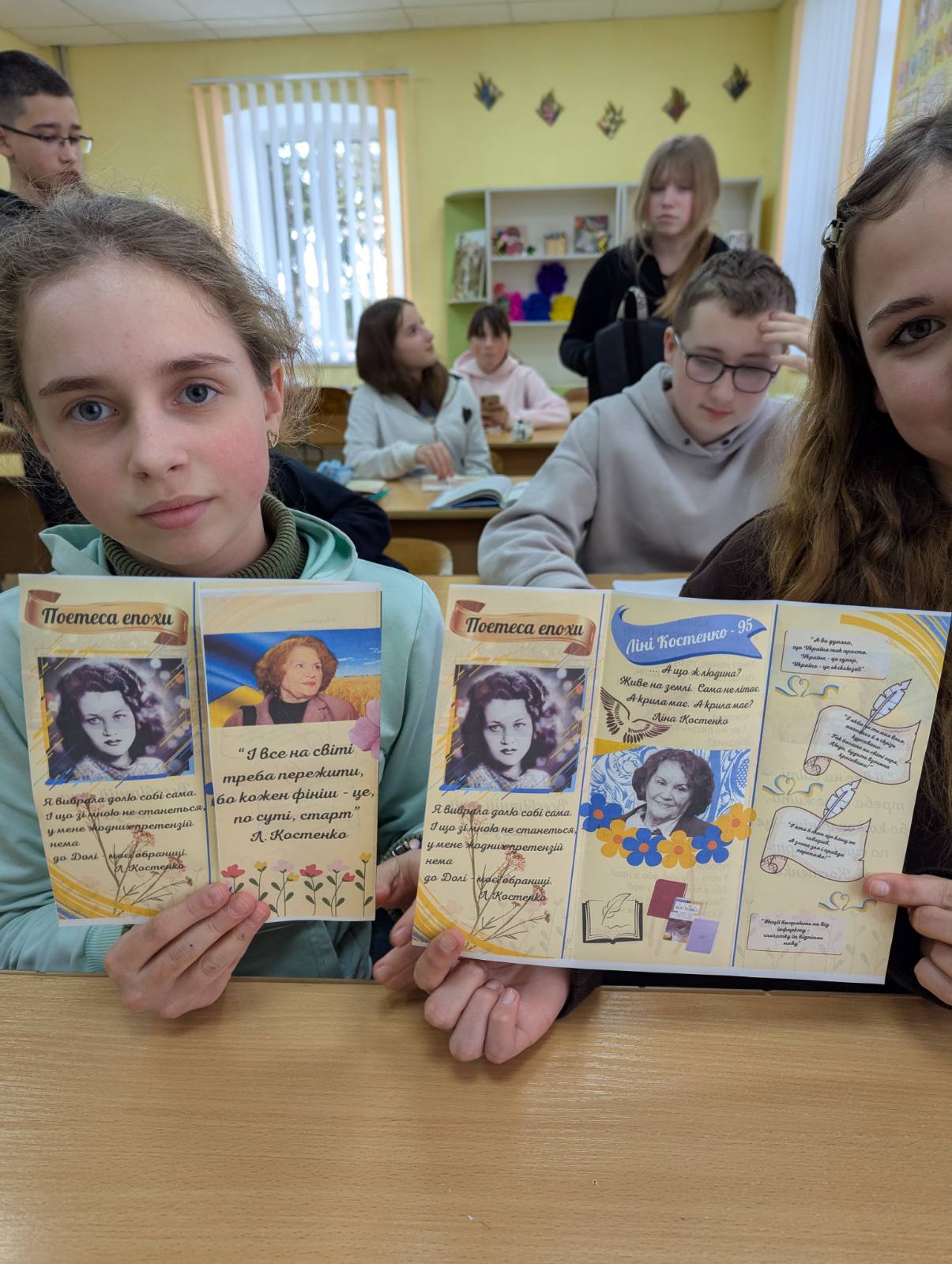 19 березня – день народження видатної поетеси Ліни Василівни Костенко. Цьогоріч їй виповнилося 96 років. Учні Мстишинської гімназії отримали буклети з віршами та відомими висловами Ліни Костенко. Її вірші не тільки читають, але й вони живуть у музиці, тому з учнями кожен урок цього дня розпочинався з пісні на слова поетеси. Кожен з учнів отримав передбачення від Ліни Василівни, а 6 клас, який ще не знайомий з творчістю цієї великої людини, зробили пошукову роботу і створили інформаційний дощ про письменницю. 7 клас переглянув лепбук, в якому знайшли для себе цікаву інформацію, зокрема фото нашої поетеси.