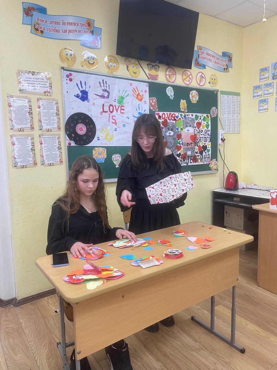 Першокласники виготовили яскраві сердечка, щоб подарувати своїм рідним.