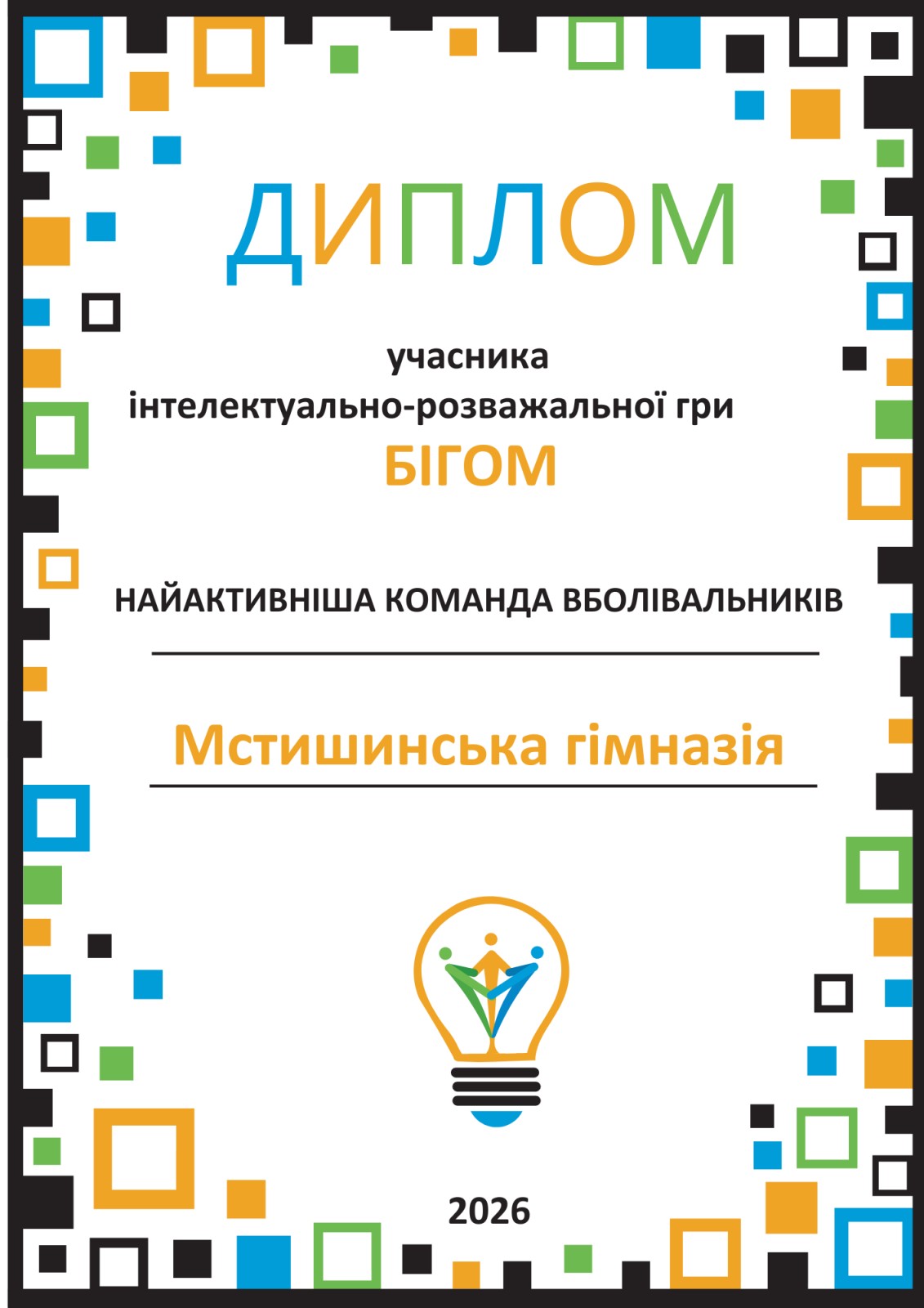 Команда гімназії з символічною назвою «Пліч-о-пліч» стала однією з учасниць інтелектуальної гри «БІГОМ», продемонструвавши справжню єдність поколінь. Честь гімназії захищали наші учні: Мар’янчик Аліна, Бондарук Христина, Сосинець Дарина, Красько Олександр. Неймовірну підтримку та впевненість команді надали наші випускниці, а нині студентки Луцького педагогічного коледжу — Анна Самолюк та Антоніна Ліхван. Справжньою сенсацією дня стали наші вболівальники! Учні 6 класу приїхали підтримати своїх фаворитів і зробили це настільки потужно, що були визнані кращою командою вболівальників серед усіх присутніх!