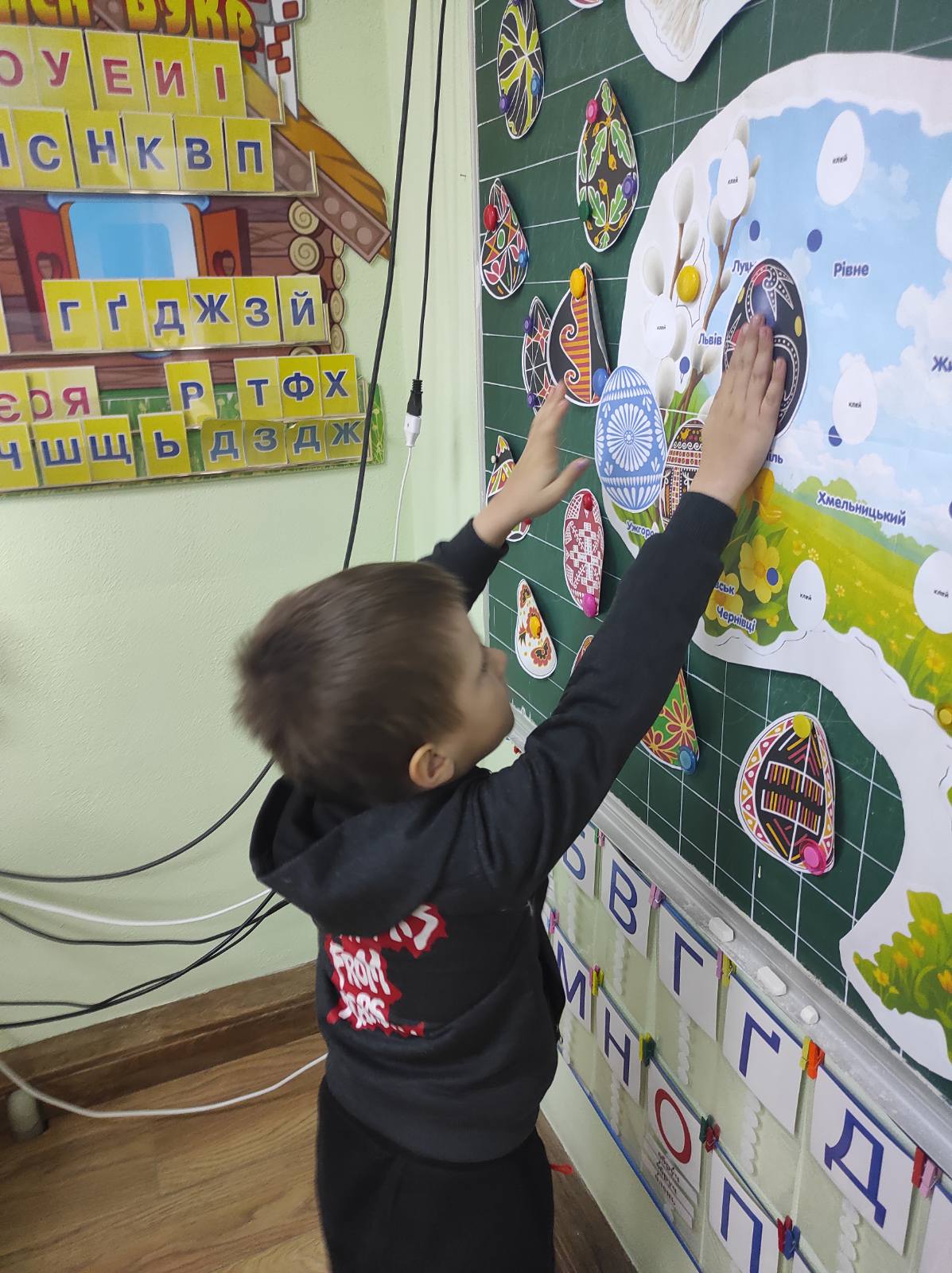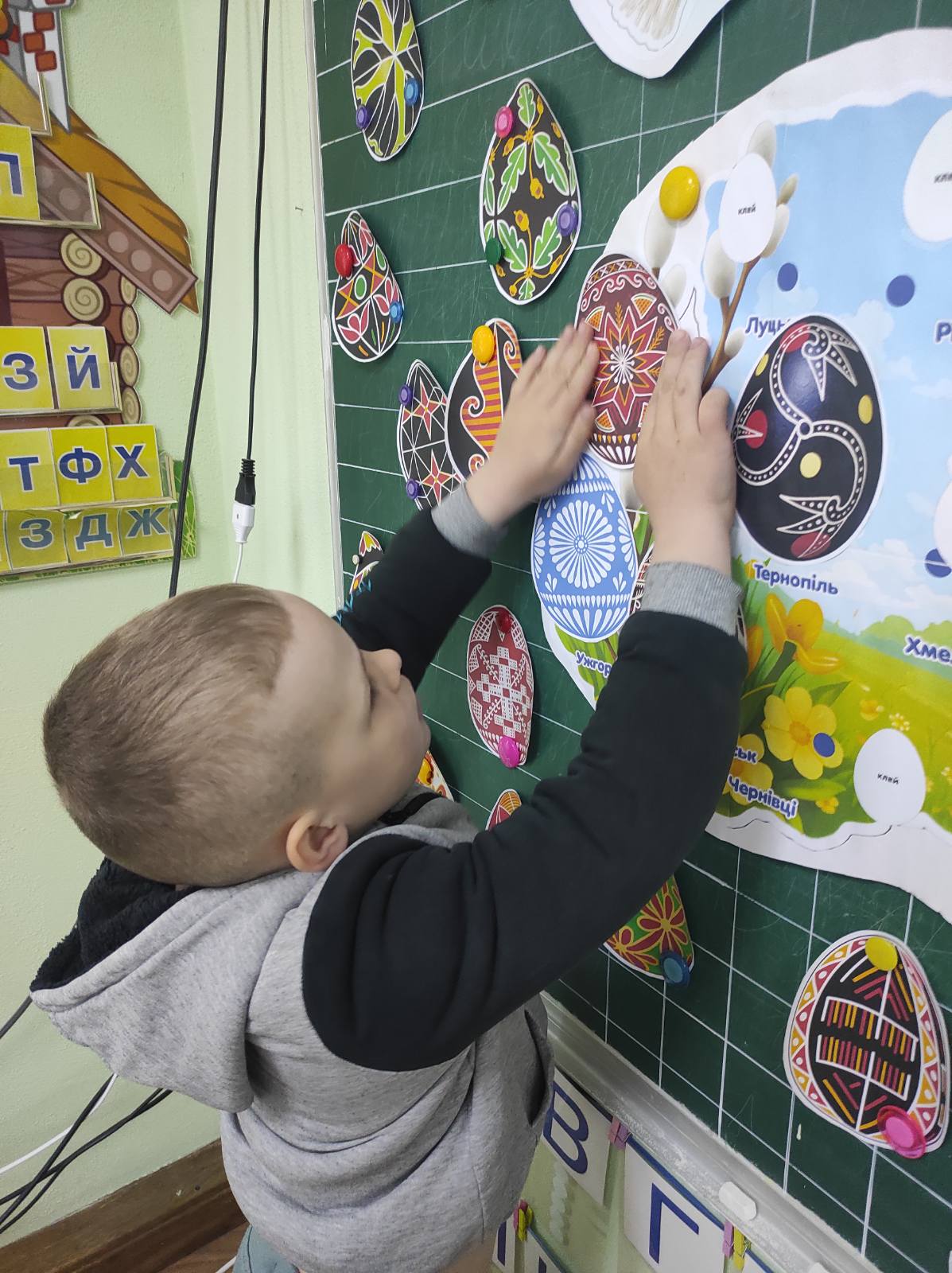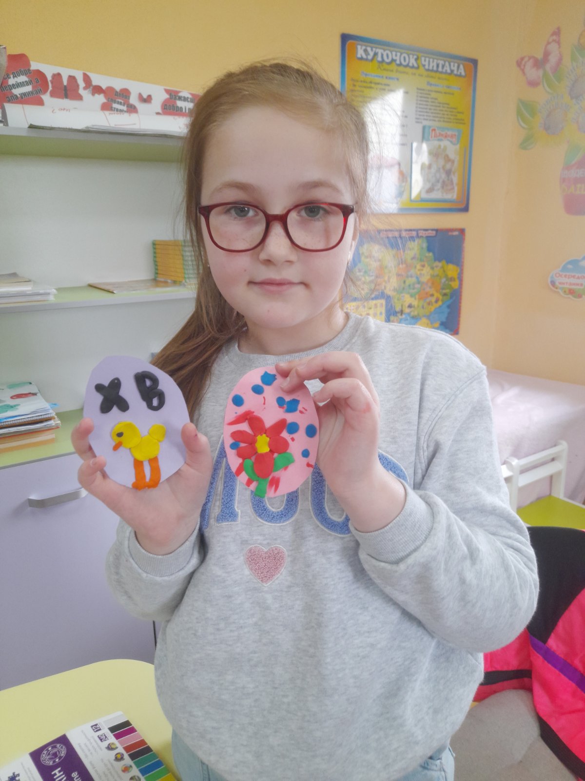 - учні 1 класу малювали пальчиками яйця – крапанки, ліпили об’ємну аплікацію “Гарна писанка у мене”, переглянули відео про “Музей Писанки”, робили перші спроби у розписі писанок воском; досліджували писанки різних регіонів України: аналізували орнаменти, створювали інтерактивну карту “Україна писанкова”, відповідали на питання вікторини (Довгополюк Н. С.);