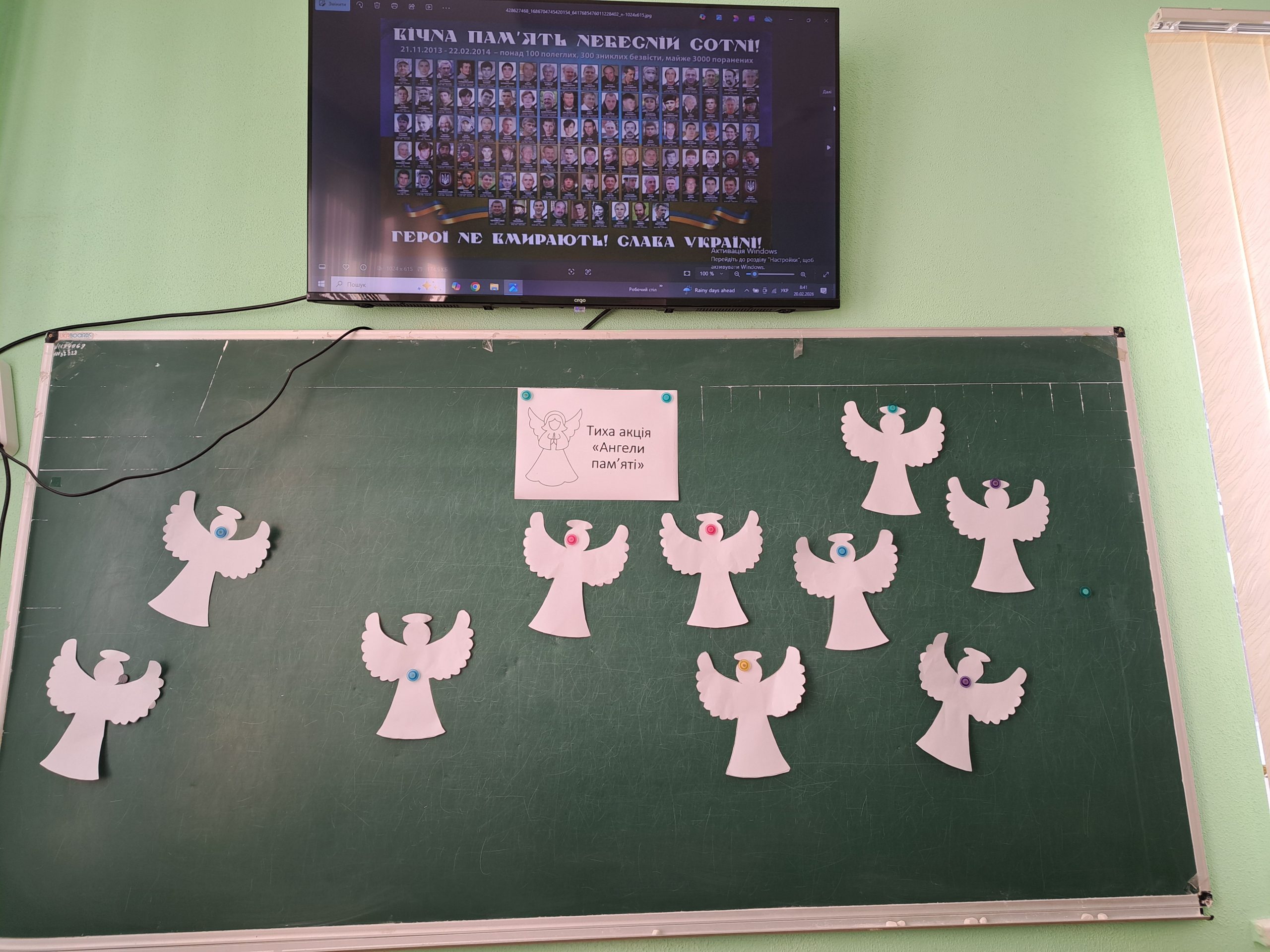 У День пам’яті  Героїв Небесної Сотні та усього  українського воїнства учні гімназії долучилися до всесвітньої тихої акції “Ангели пам’яті”. Діти зробили білих паперових ангелів, які символізують загиблих за Україну та віру в перемогу світла над темрявою.