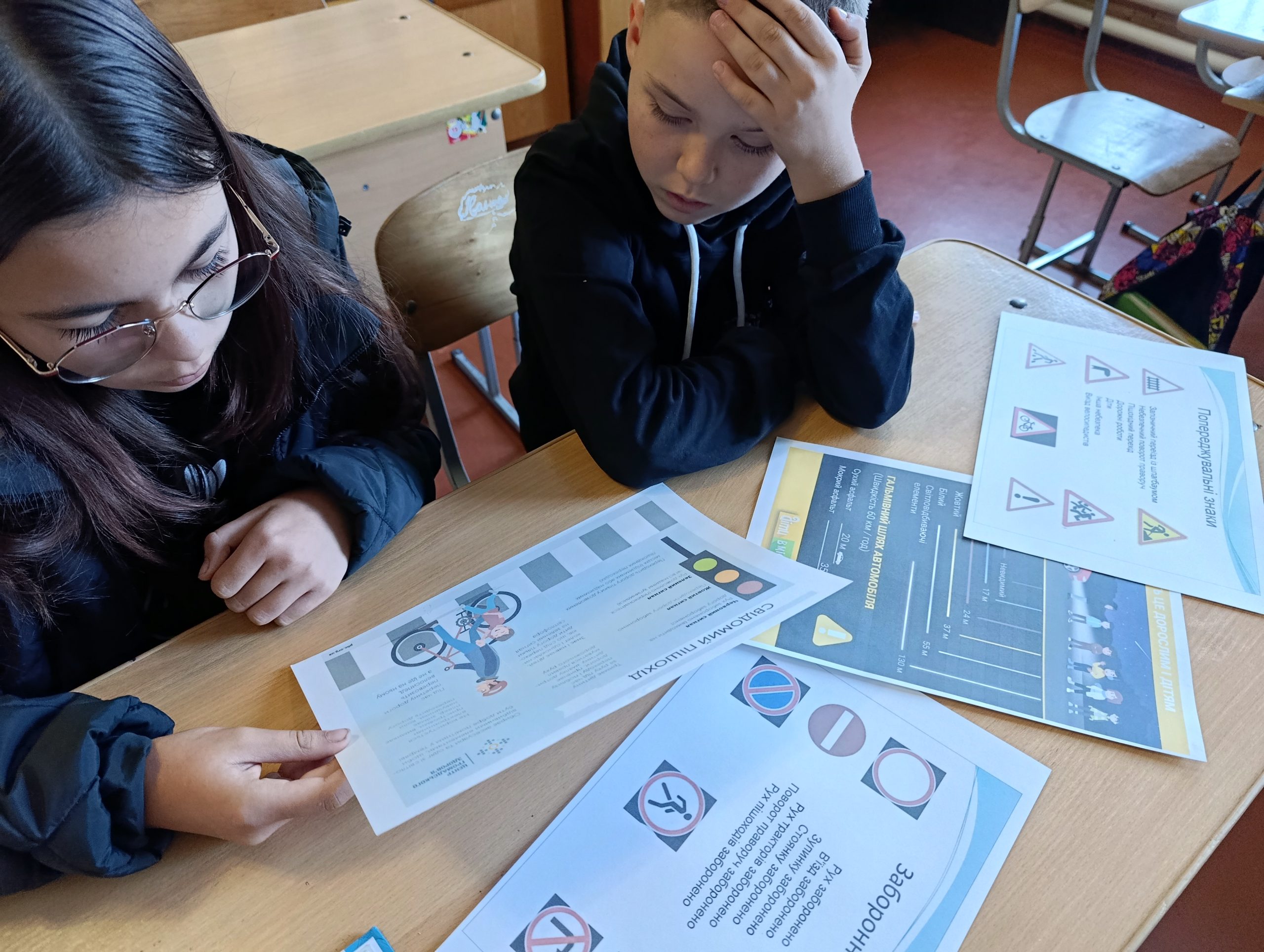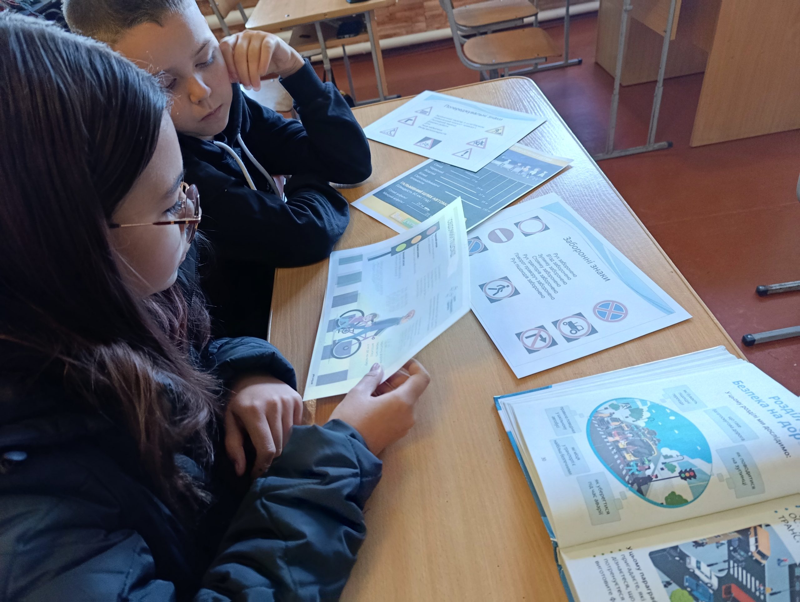 1 клас – перегляд серії мультфільмів “Азбука безпеки на дорозі з тітонькою Совою” з подальшим обговоренням; розглядання дорожніх знаків, пояснення їх значення.