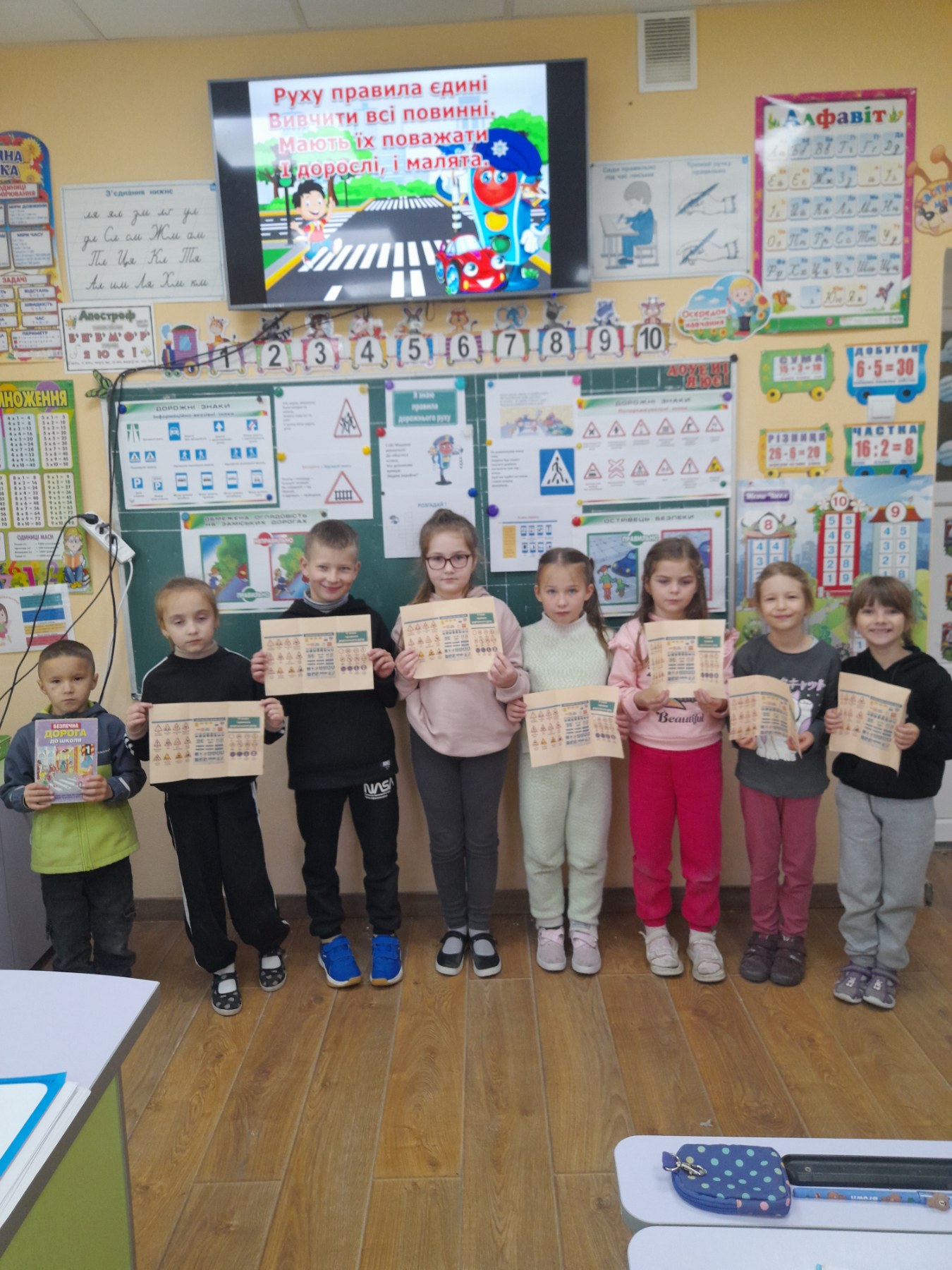 2 клас – учні переглянули пізнавальну презентацію «Правила дорожнього руху» та взяли участь у веселій вікторині «Відгадай знак»; пригадали основні правила безпечної поведінки на дорозі й дізналися чимало нового; а згадку кожен отримав яскравий буклет із дорожніми знаками — щоб завжди пам’ятати: уважність і знання правил допомагають зберегти життя!